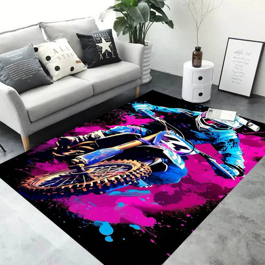 3D Racing Motorcycle Rug – Non-Slip Area Floor Mat