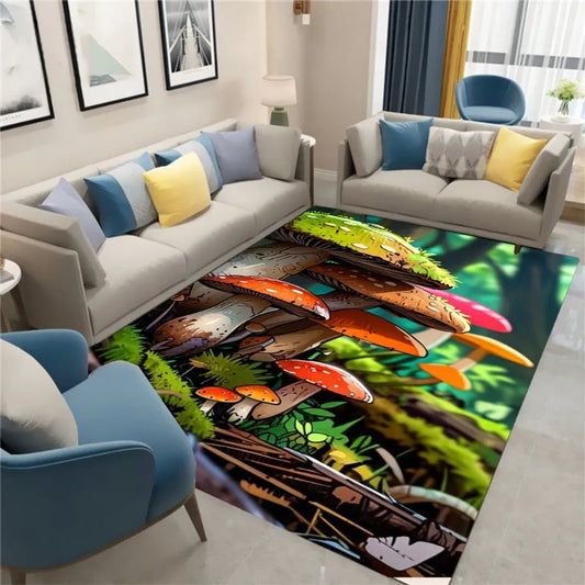 3D Mushroom Forest Rug – Colorful Cartoon Non-Slip Floor Mat