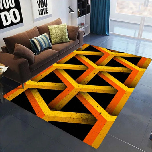 3D Geometric Area Rug – Anti-Slip Living Room Carpet