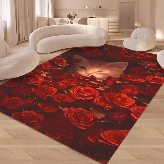 3D Rose Peony Cat Plush Carpet for Living Room & Bedroom Decor