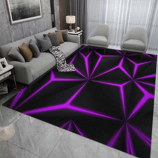 3D Geometric Neon Rug – Hexagon Gaming Carpet for Home Decor
