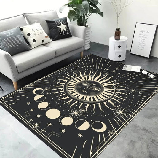 Witch Sun Moon Pentagram Carpet – Gothic Decor Rug, Anti-Slip Altar/Doormat for Living Room, Sofa & Bathroom
