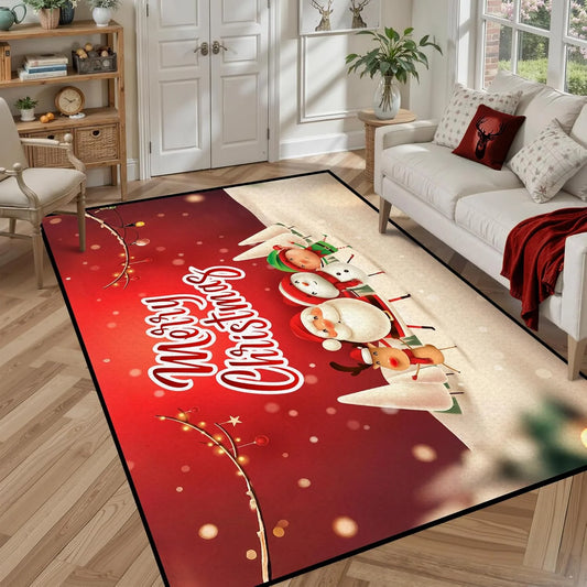 Xmas Area Rug – Merry Christmas Floor Mat, Anti-Slip Washable Flannel Carpet for Bedroom, Living Room & Kitchen