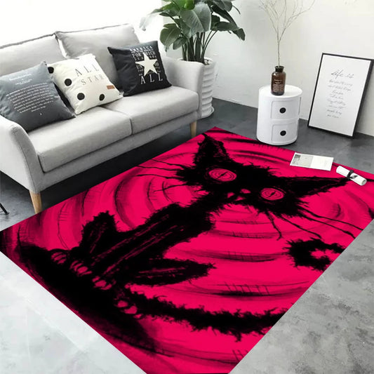 Yellow Graffiti Scary Black Cat Printed Carpet Graffiti Abstract Anti Slip Pad Horror Series Home Decoration Carpet