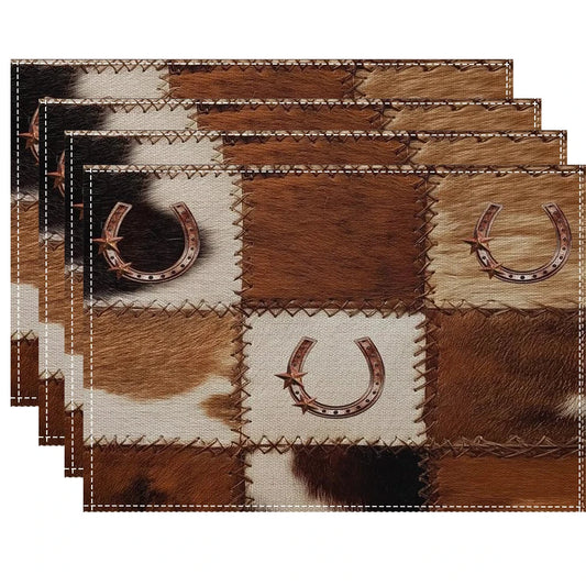 Western Cowhide Linen Non-Slip Rectangular Placemats for Dining Table Kitchen Home