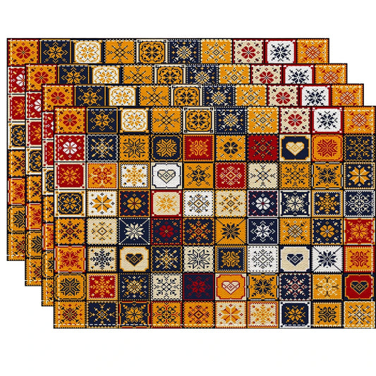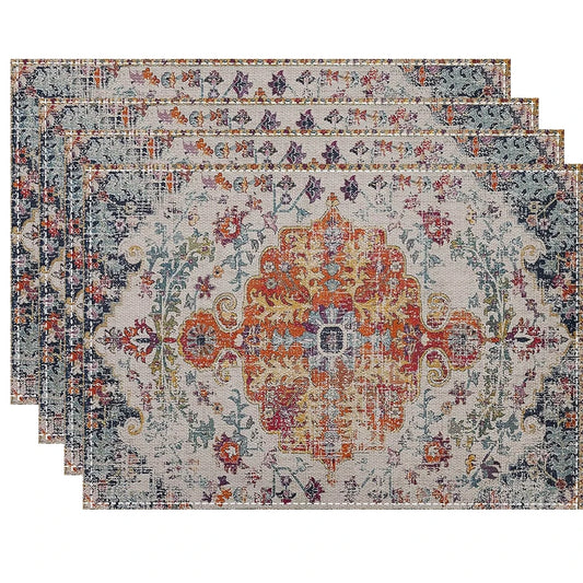 Boho Ethnic Placemats Set (4/6/8pcs) – Heat-Resistant Linen Table Mats