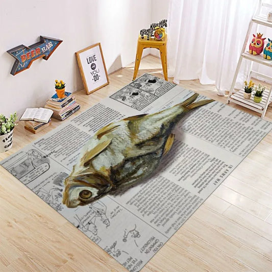 Vintage Newspaper Fish Rug – Non-Slip Artistic Floor Maat