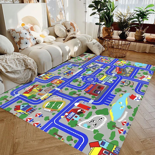 Interactive City Traffic Kids Rug – Educational Road Play Carpet for Bedroom & Living Room