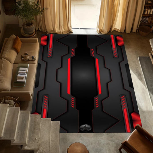 Neon Hexagon Gamer Rug – Black Red Non-Slip Washable Floor Mat
