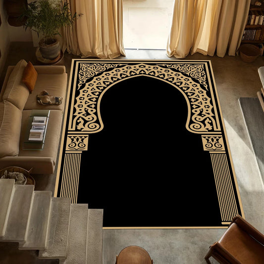 Luxury Islamic Prayer Rug – Black Gold Elegant Floor Mat